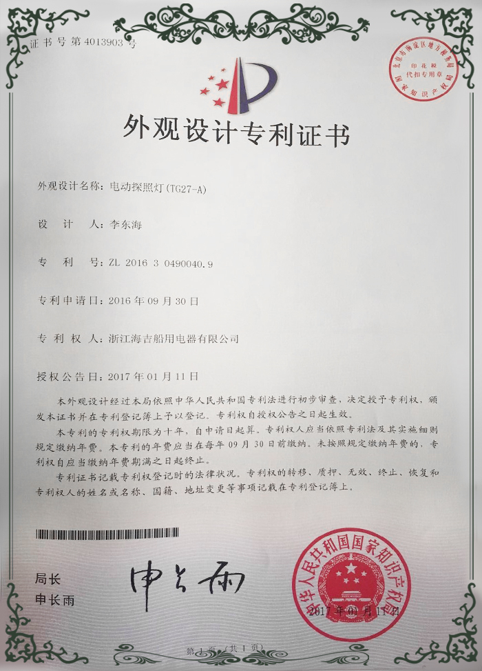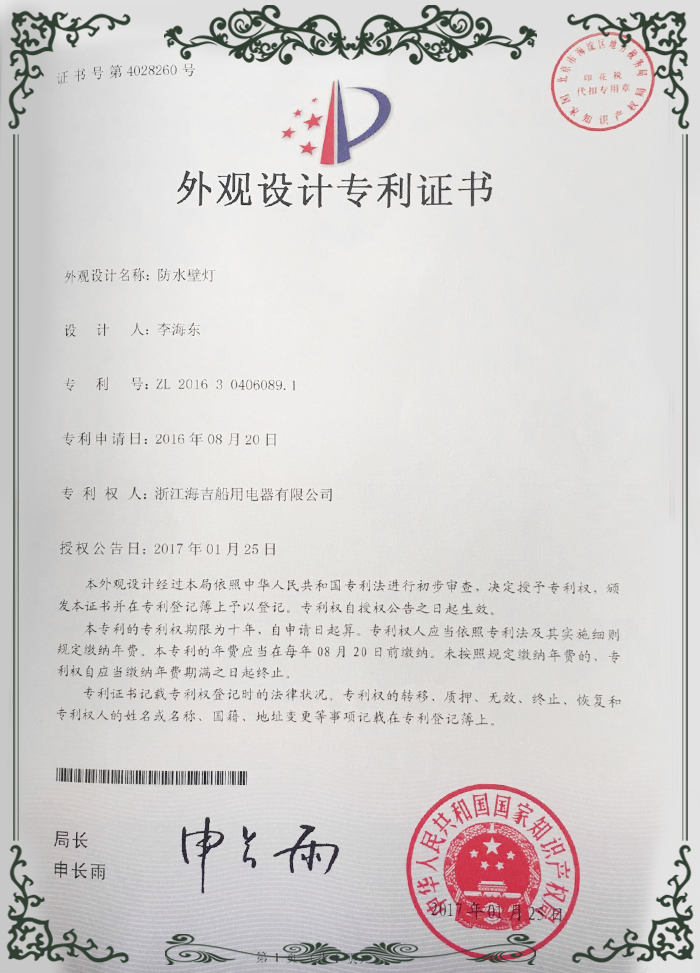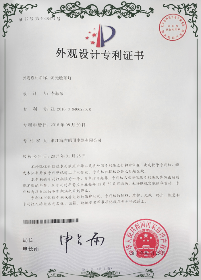 外觀設(shè)計(jì)專利證書1