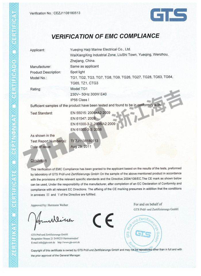 投光燈CE證書