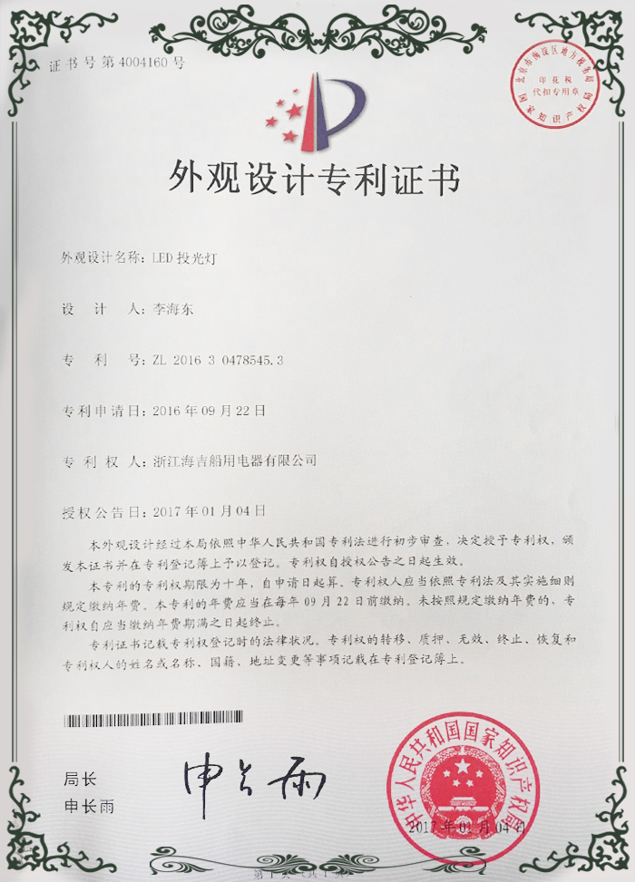 外觀設(shè)計(jì)專利證書4