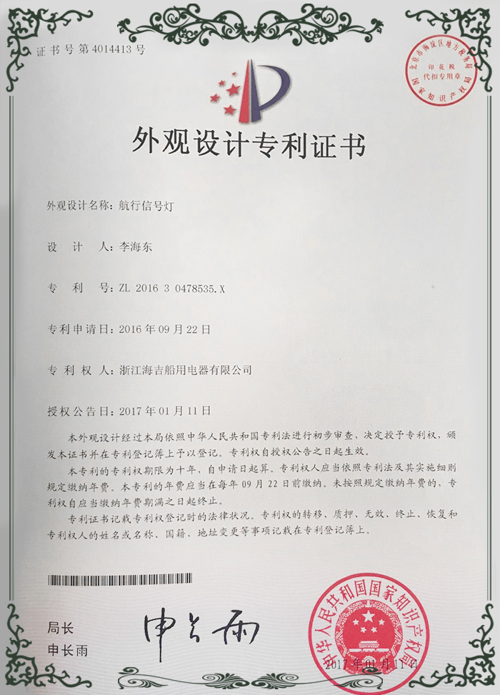 外觀設(shè)計(jì)專利證書11